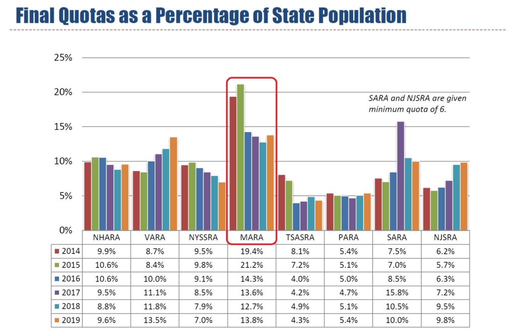 Here’s a great PDF that shows how quotas are set at the U14 level and how each region stacks up against the others. If you’re not much into charts, at least take a look at the last page. Thanks to some great training venues and outstanding coaches, Maine has one of the strongest programs in the East!